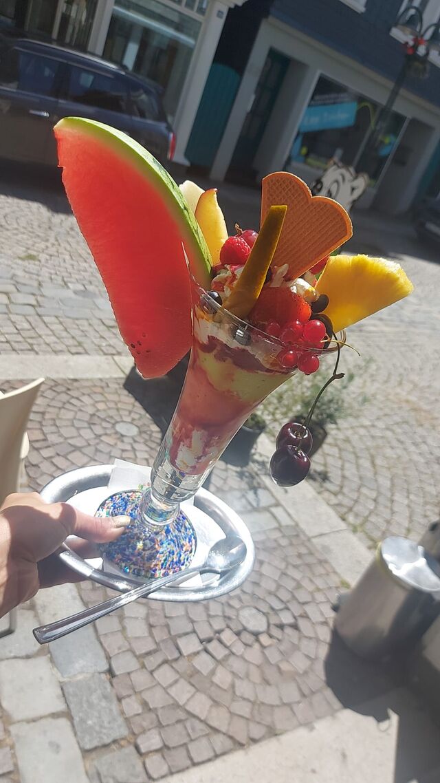 Unsere hausgemachten Eissorten findet ihr in verschiedenen Eisspezialitäten-Bechern, mit selbstgemachtem Frucht- und Milcheis, frischen Früchten, Nüssen, verfeinert mit alkoholischen Spezialitäten oder/und Soßen zum Geniessen!